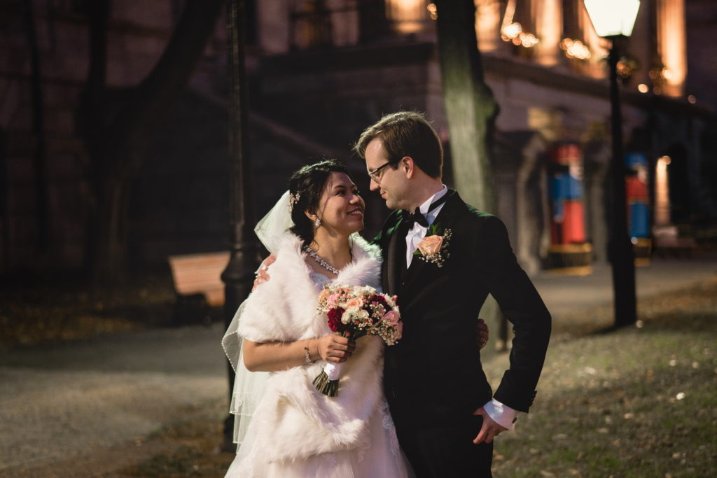 I may be biased, since my husband and I got married at the end of chilly November. Our guests had to wear coats, I had a faux fur shawl wrapped around me for outdoors, and our photos, however lovely, captured the moody shadows of that dusky afternoon. It could have been freezing—however, looking back, I was kept warm by the joy of celebrating this occasion with loved ones, the accomplishment of finally pulling this wedding off after months of preparation, and the exciting glimmers of the new, married life that beckoned.