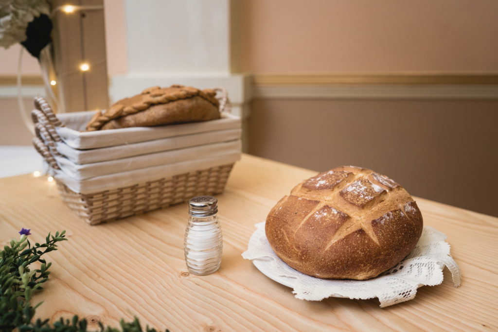 Aside from that second day, we also did the Polish tradition of the groom carrying the bride upon entering the door of the reception (which my husband has to practice many times!), the blessing of the bread and salt, and the oczepiny, in which my veil was removed. The bread and the salt had been blessed during Mass, and our parents welcomed my husband and I into the reception hall with these. The bread was ti symbolize wishes of abundance, and the salt strength to withstand life’s difficulties. (I can say without hesitation that we needed that salt, and maybe a bit more!) And then, right after (although the tradition is to do it close to midnight), the veil I was wearing was removed. This was to symbolize further the transition from a single to a married woman, and I have a vague memory of being able to let my hair down as well.